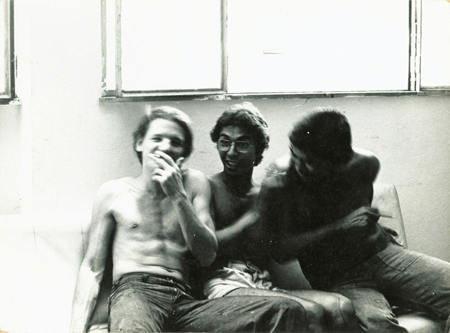 Assistentes do artista na construção e pintura do Painel da CAIXA 1974